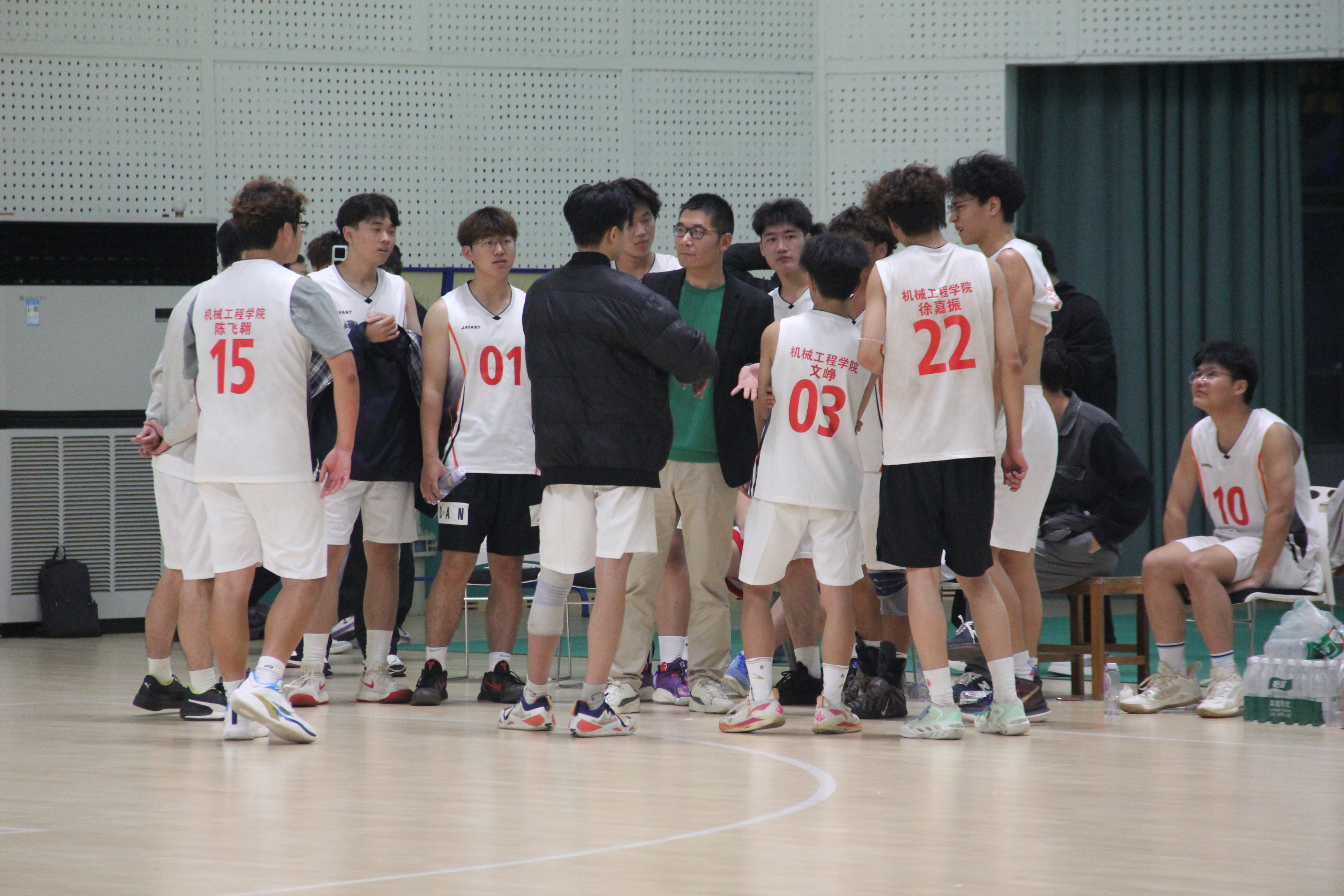 决赛之夜,体育馆内人声鼎沸,气氛热烈。机械工程学院男篮队员们从开场第一秒便展现出必胜的信念与钢铁般的意志。进攻端,他们行云流水,默契的传导球撕开对手防线;防守端,他们构筑起铜墙铁壁,步步紧逼、奋力拼抢。比分交替上升,队员们始终眼神坚定,相互击掌鼓励,将“团结一致”的团队精神诠释得淋漓尽致。最终,当终场哨声响起,记分牌定格在胜利的比分时,队员们相拥庆祝,球馆里瞬间化作一片欢乐的海洋。