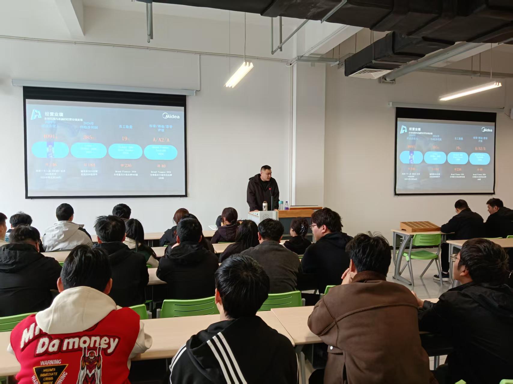 刘永利回忆了自己在学校生活、学习的经历,分享了自己毕业后工作的心得体会。毕业后他第一个入职的企业就是美的楼宇,一直工作到现在。从最基层的一线员工做起,先跟着师傅做技术,随着企业发展越来越好,他的踏实认真也得到了领导的认可,慢慢开始做管理,现工作岗位公司人力资源部招聘负责人。他以自己实际的工作经历告诉同学们:重视自己的第一份工作,扎实做好每一个岗位,静下心来,踏实勤恳,打磨自己的技能,慢慢沉淀积累厚度,才能给自己创造更多机会。同时他结合自己工作经验,对同学们进行简历书写、面试技巧的指导,以及实习就业后职业发展的一些技巧途径进行了分享。他告诫同学们在职业发展上要树立长远目标,根据自己的性格、能力、特点确定自己职业岗位,提前做好职业规划,实现长期发展。