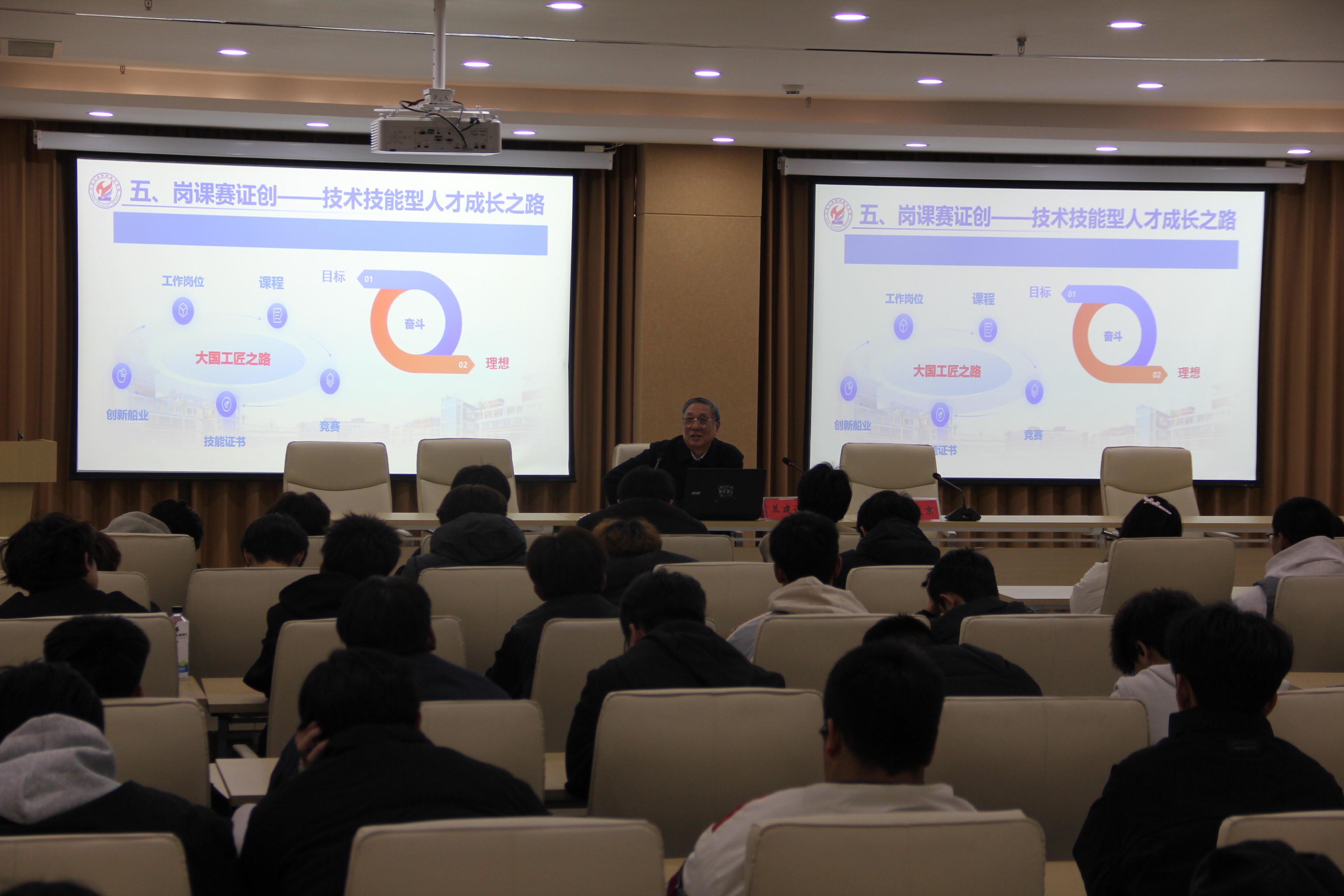兰建设的报告逻辑清晰、深入浅出。他围绕“奋斗、目标、理想”三大关键词,勉励同学们要将个人理想融入强国建设的时代洪流,在技能竞赛、专业实践、创新创业中锤炼本领,以“岗课赛证创”五位一体的成长路径为核心,不断提升技术技能水平。现场,兰教授通过生动的案例和朴实的语言,引导学子思考如何在日常学习生活中践行法治精神、锤炼品德修为,赢得了在场学生的阵阵掌声。