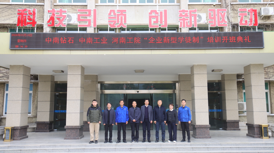 2026年3月19日,我校联合中南钻石有限公司、河南中南工业有限责任公司举办的企业新型学员制培训开班典礼,在中南钻石有限公司隆重举行。方城县人力资源和社会保障局副局长李学峰、就业创业服务中心副主任曹明,中南钻石副总经理刘建国、中南工业纪委书记冯朝辉,我校副校长朱成俊、继续教育学院相关负责人、授课导师和全体参训学员共同出席典礼。开班典礼由中南钻石党群工作部人力资源部部长郭超主持。