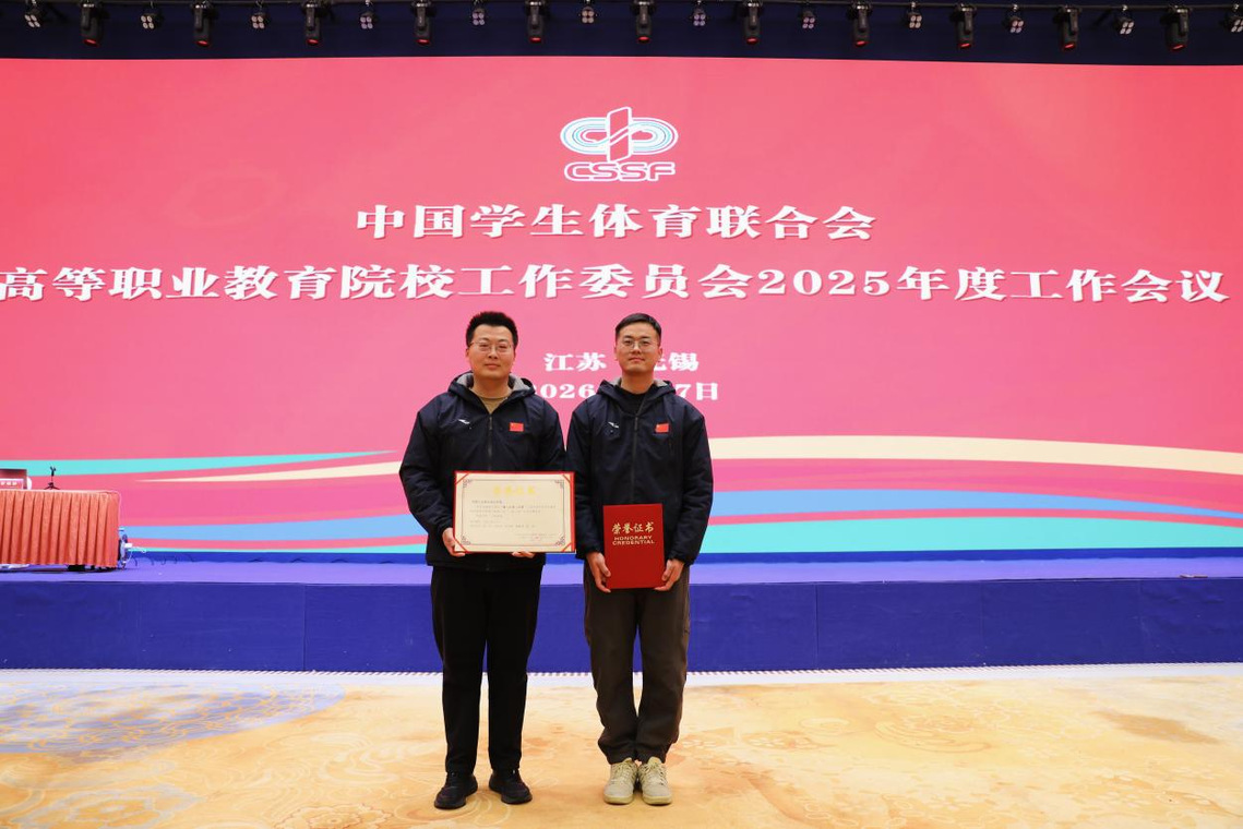 2026年1月6日至9日,全国高职院校体育工作高质量发展会议暨中国学生体育联合会高等职业教育院校工作委员会2025年度工作会议在江苏省无锡市举行,本次会议由无锡职业技术大学承办,北京工业职业技术学院、南京信息职业技术学院协办,来自全国29个省(市、自治区)的311所会员单位近500名代表参加了会议。会上,中国学生体育联合会高等职业教育院校工作委员会会同教育部全国高等学校体育教学指导委员会联合公布了第二轮第一批全国高职院校体育工作“一校一品”遴选结果,并对获评院校进行了表彰。我校以申报的《豫工匠韵八段锦》品牌项目入选全国高等职业院校体育工作“一校一品”示范基地。
