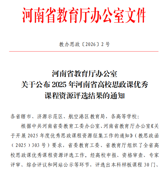 【喜报】学校马克思主义学院在河南省高校思政课优秀课程资源评选工作中喜获佳绩