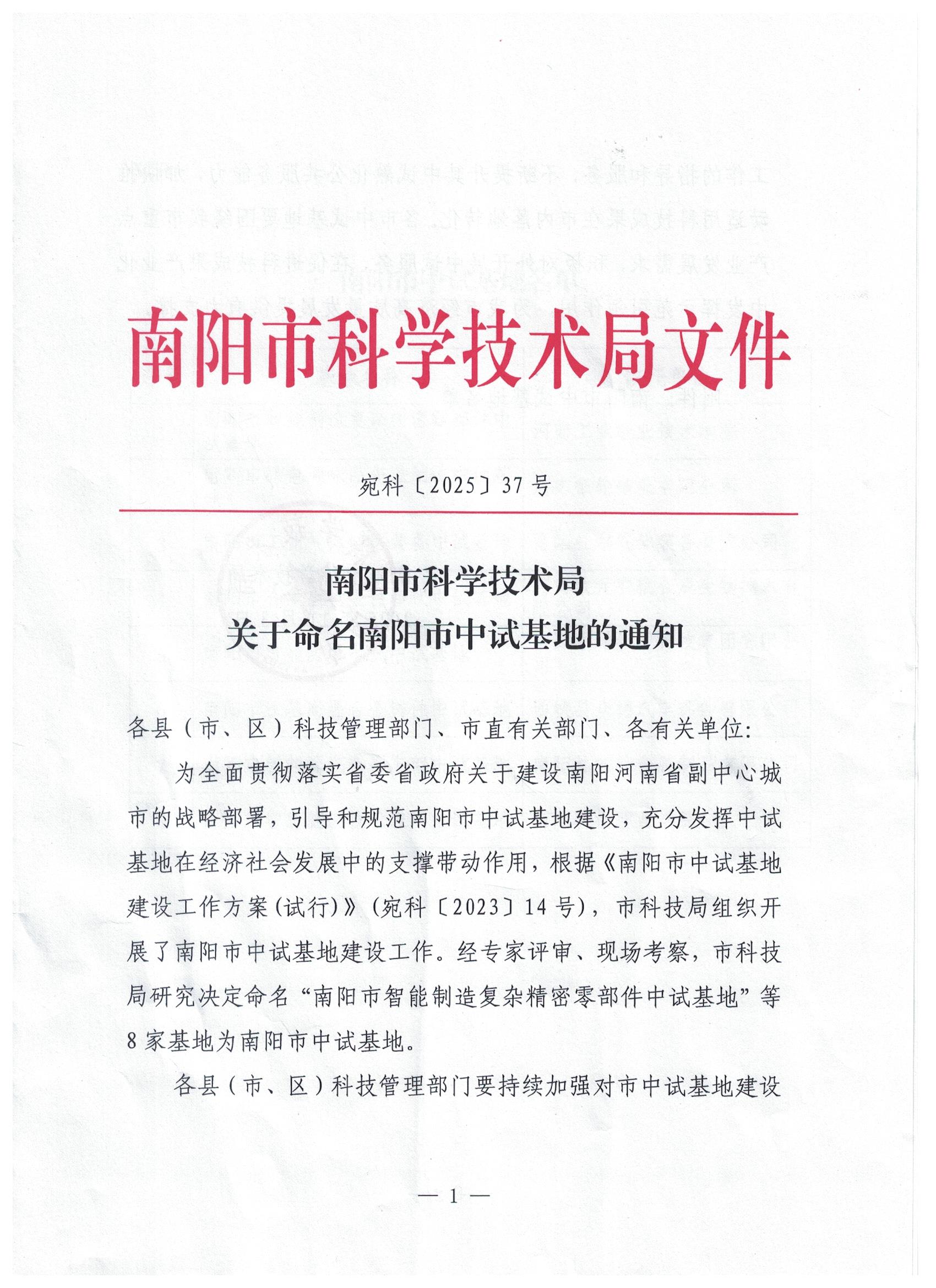 我校获批南阳市智能制造复杂精密零部件中试基地