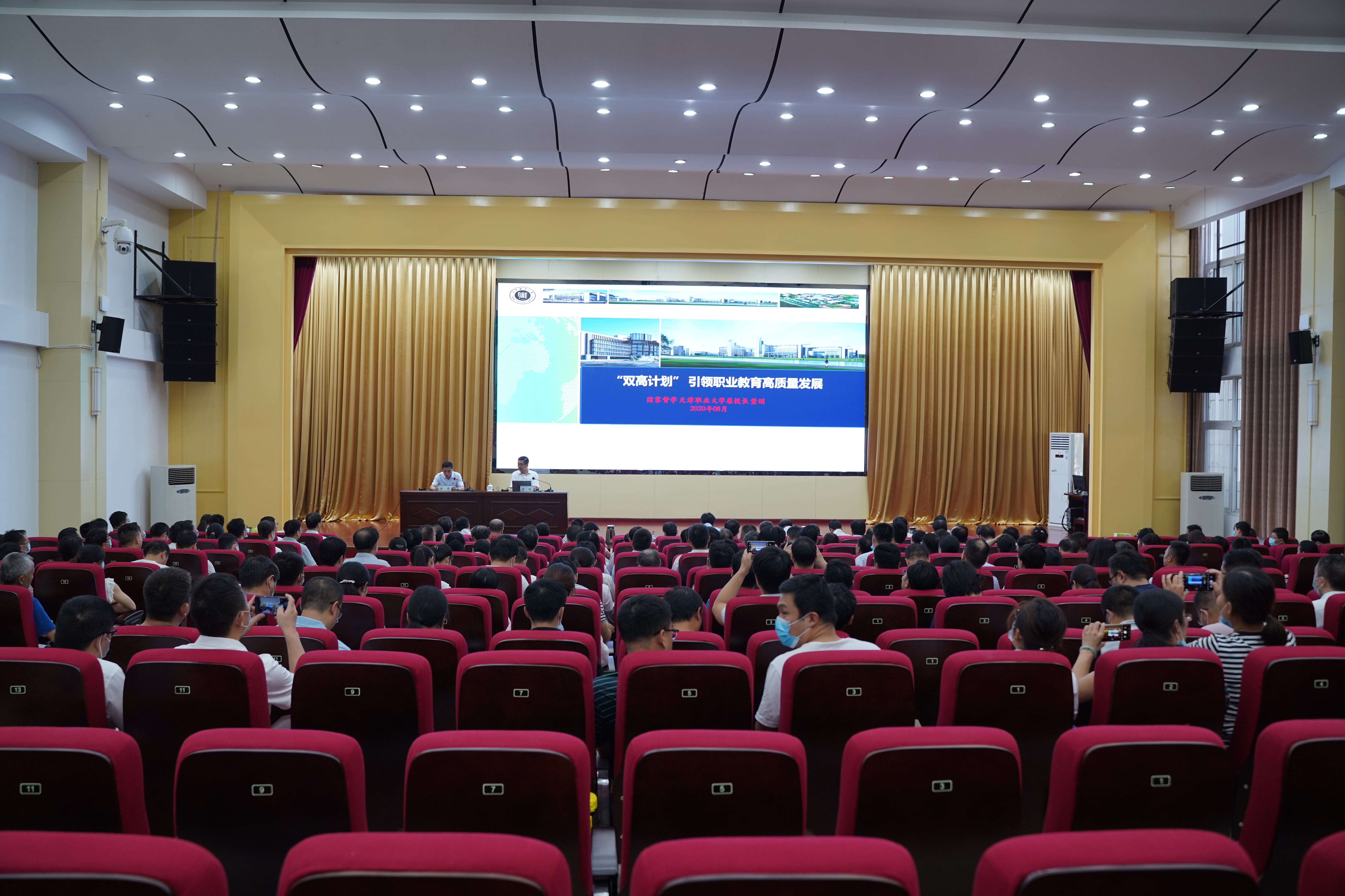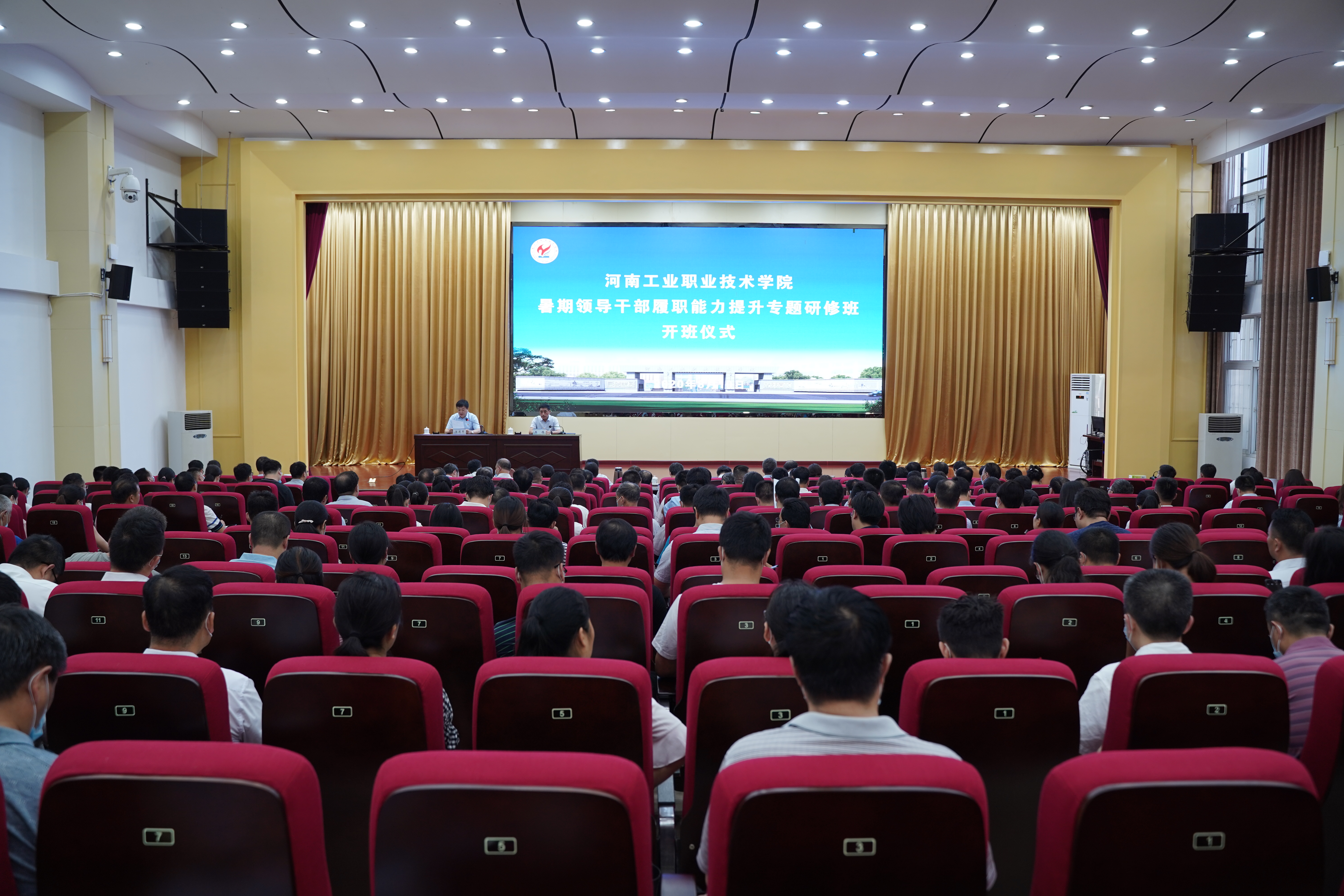 8月10日上午,学校暑期领导干部履职能力培训班校内培训开班仪式在孔明路校区大学术报告厅举行。我校特邀国家督学、全国高职高专校长联席会主席、天津职业大学原校长董刚教授,来校作了题为《“双高计划”引领职业教育高质量发展》的专题讲座。学校领导温道军、王伟、杜建根、王仁伟、刘纪山、贾庆成、李荣胜、屈保中、樊有平及副科级以上干部、教研室主任参加培训。开班仪式由党委副书记、校长王伟主持。