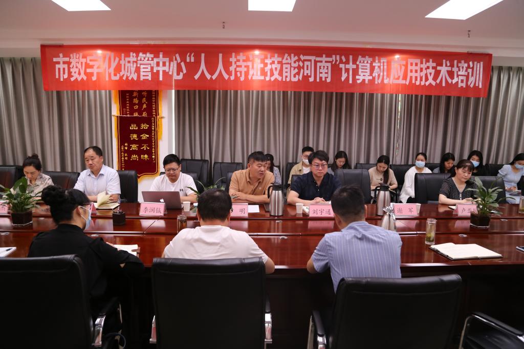 为深入贯彻落实《河南省教育厅河南省人力资源和社会保障厅关于印发<河南省教育系统落实“人人持证、技能河南”建设工作任务实施方案>的通知》精神要求,经继续教育学院与南阳市数字化城市管理监督指挥中心积极对接,南阳市数字化城市管理监督指挥中心“人人持证 技能河南”计算机应用技术培训于6月7日在南阳市数字化城市管理监督指挥中心顺利开班。指挥中心党支部副书记韩明、副主任马勤瑞、办公室主任卢亚珂、学校相关部门教师及40余名学员参加了开班仪式。