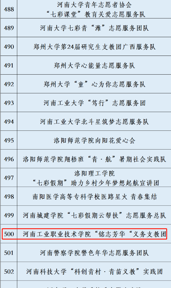 机械工程学院团总支积极响应,招募志愿者成立“铭志芳华”义务支教团,以青年志愿服务队的方式组织申报。截止5月20日,全国4500多支志愿服务团队提交了申报材料,承办方对所有材料进行了认真审核,遴选了1000支团队作为2022年“七彩假期”志愿服务示范团队,“铭志芳华”义务支教团成功入选,是河南省国家“双高计划”建设单位唯一入选的学校团队。