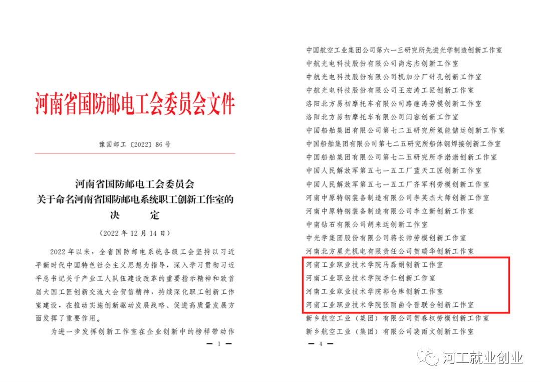 4.学校高技能人才队伍、劳动模范和创新工作室建设工作再添佳绩