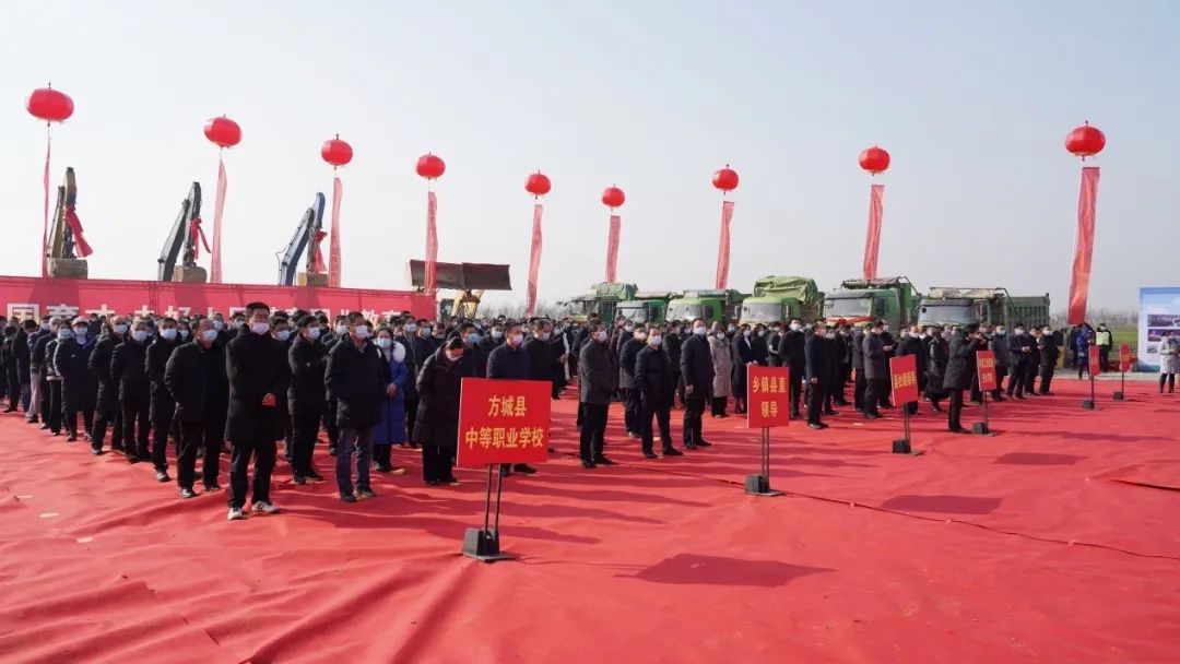 1月17日,学校东校区开工奠基仪式在方城县隆重举行,南阳市政协副主席、市教育局党组书记、局长杨文普,市乡村振兴局副局长王国彬,方城县县委书记段文汉,县人大常委会主任白岩,县政协主席甘泉涛,县委常委、宣传部部长兼副县长岳太斌,县人大常委会副主任、教体局党组书记高中玉,学校党委书记温道军、校长王伟、副书记杜建根、副校长贾庆成、纪委书记李荣胜、工会主席屈保中出席奠基仪式。奠基仪式由方城县县委常委、常务副县长赵国臣主持。