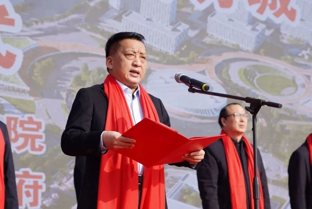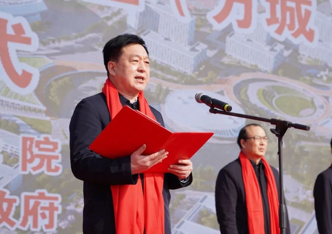 温道军代表学校向东校区开工奠基表示热烈祝贺!向关心与支持东校区建设的市县领导和社会各界表示诚挚的感谢!他指出,东校区承载着学校全体师生的热切期盼,是学校历届领导和师生多年来的夙愿,也寄托着方城人民的深情厚爱。项目奠基开工,是学校50年办学史上的一件大事,是方城人民期盼的一件喜事,开启了校地合作的崭新篇章,开创了我省高职院校和县级政府合作的先河。他表示,全校上下将不忘合作初心,牢记职责使命,把东校区建设作为学校事业发展的重大历史机遇,坚持规划引领、强化统筹联动、立足产业需求、优化专业布局,将东校区与学校现有校区建设统筹考虑,确保高水平规划、高标准建设,努力打造职业教育的新名片、校县合作的典范,为方城创新驱动发展注入强劲动能,为南阳建设省域副中心城市培养更多高素质技术技能人才。