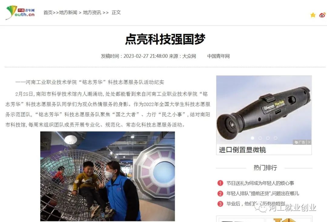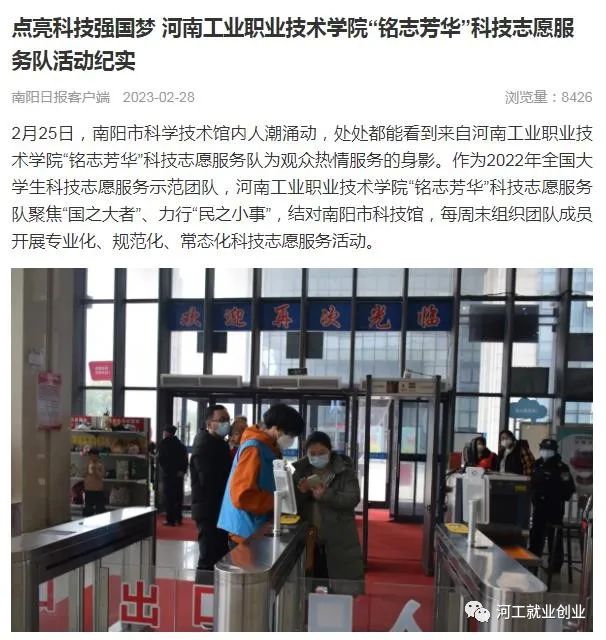 编者按:为拓宽我校实践育人途径,不断提升大学生志愿服务工作实效,近年来,全国大学生科技志愿服务示范团队----“铭志芳华”科技志愿服务队,不断创新丰富志愿服务形式,积极服务地方经济与社会发展,深化拓展实践育人载体,持续开展义务支教、文化帮扶、环境保护、“三下乡”、无偿献血等实践育人活动,志愿服务工作实效、育人成效逐步提升。近日,中国青年网、南阳日报客户端对“铭志芳华”科技志愿服务队开展的系列活动进行了宣传报道。