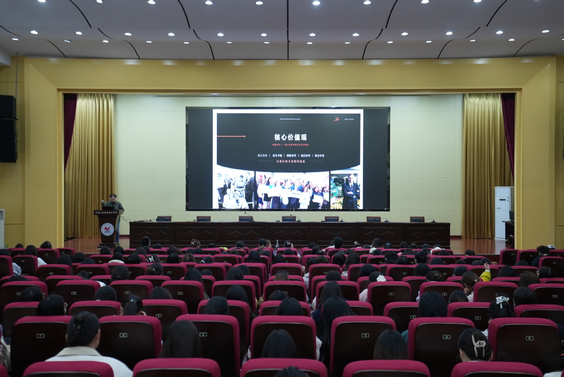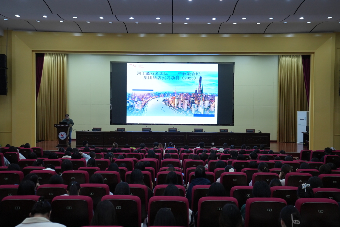 为深化校企协同育人,拓宽学生就业渠道,10月10日,文化旅游与国际教育学院组织2026届旅游管理专业群毕业生参加万豪国际集团订单班开班仪式,本次活动由万豪国际集团河南区域代表王阳担任主讲,学院相关领导、部分教师以及2026届旅游管理专业群全体学生参加。