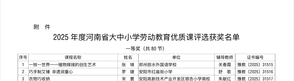 全省大中小劳动教育优质课评选活动中取得优异成绩