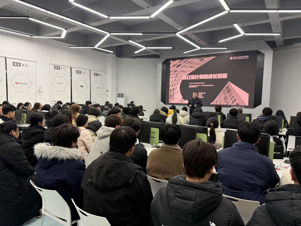 近日,建筑工程学院邀请建筑室内设计专业2017级优秀毕业生苏正超,为本专业大一学生带来了一场题为“独立设计师成长历程”的校友讲堂活动。本次活动由室内设计教研室主任任华楠主持,建筑室内设计专业2025级全体同学参加。