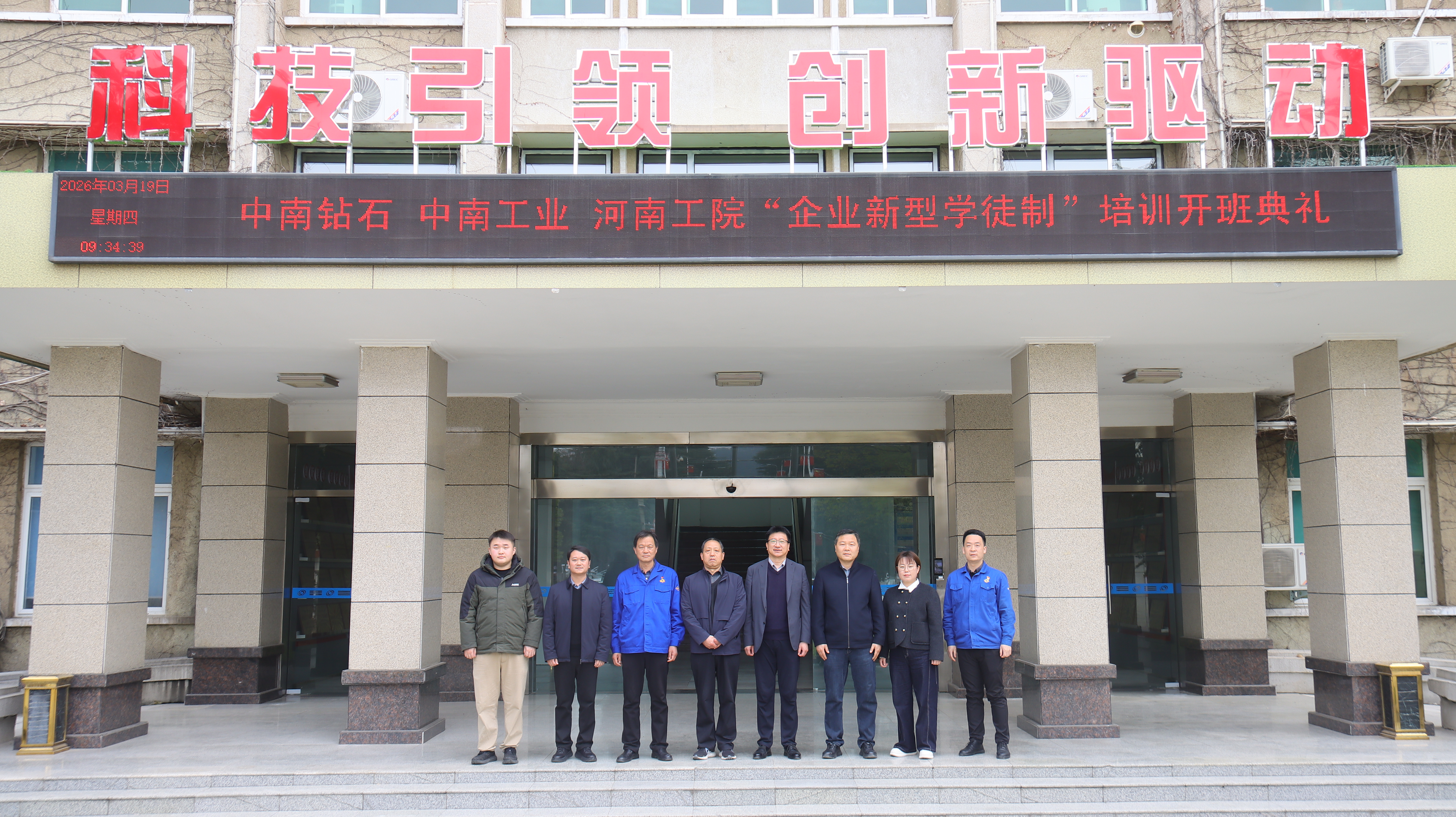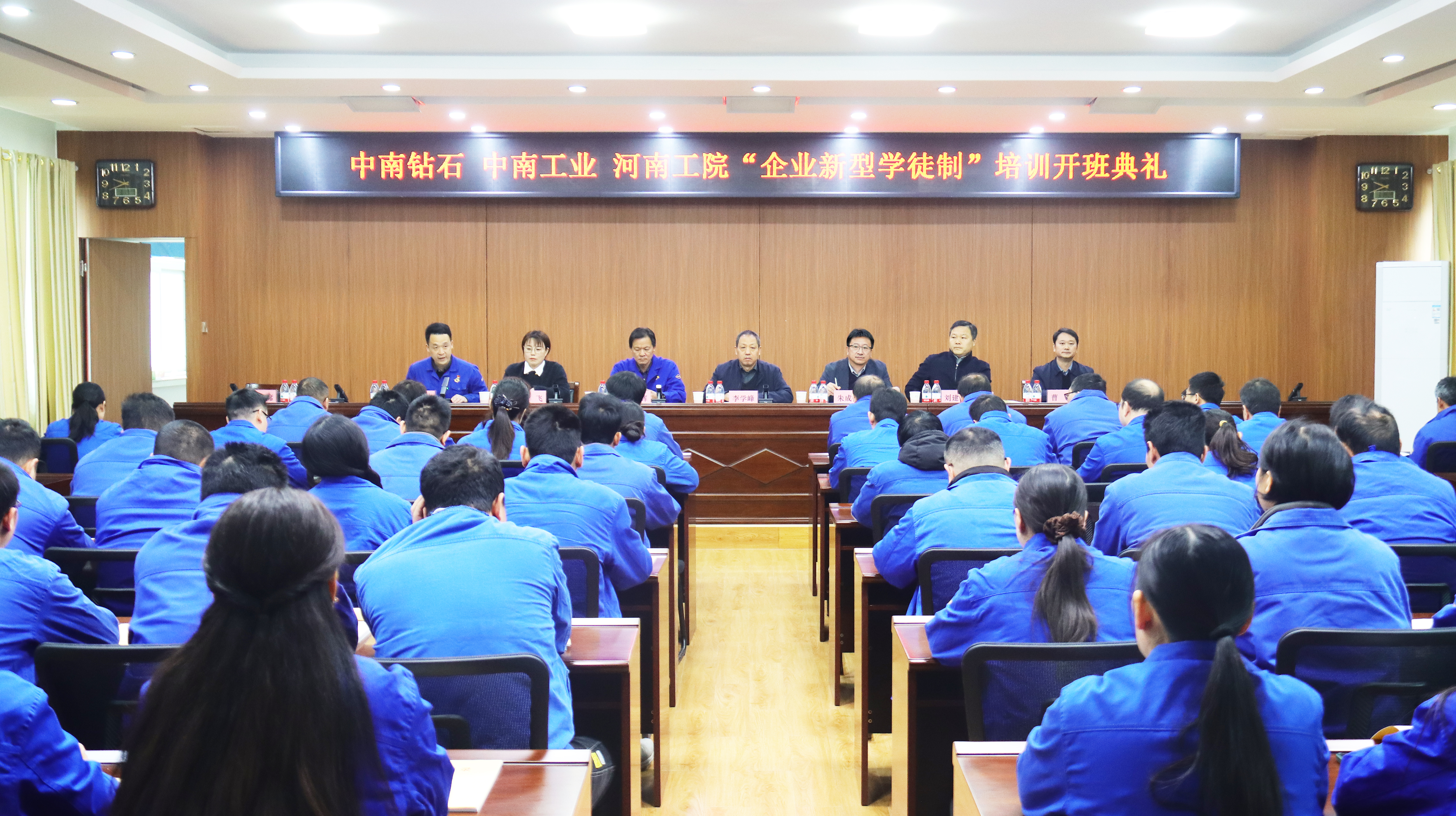 2026年3月19日,我校联合中南钻石有限公司、河南中南工业有限责任公司举办的企业新型学员制培训开班典礼,在中南钻石有限公司隆重举行。方城县人力资源和社会保障局副局长李学峰、就业创业服务中心副主任曹明,中南钻石副总经理刘建国、中南工业纪委书记冯朝辉,我校副校长朱成俊、继续教育学院相关负责人、授课导师和全体参训学员共同出席典礼。开班典礼由中南钻石党群工作部人力资源部部长郭超主持。